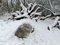 Der Baum wurde Ende Januar 2013 bei einem Sturm vom Blitz getroffen, stürzte um und zerbrach.